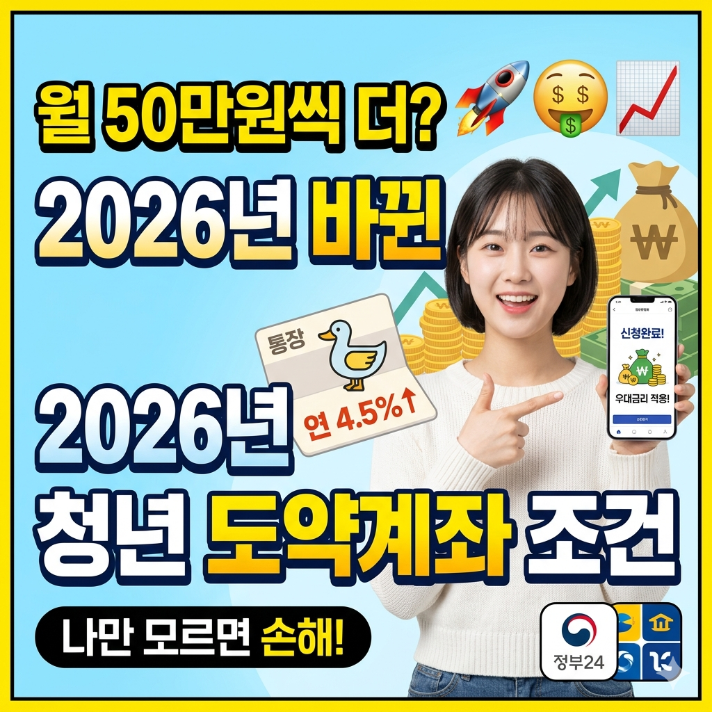 오늘 이 글에서는 2026년형 청년 도약계좌 핵심 변경점과 함께, 계좌가 묶이는 게 싫은 분들을 위한 금리 연 4.5% 이상 파킹통장까지 완벽하게 비교해 드립니다. ⚠️ 내 소중한 종잣돈, 정보 하나 차이로 수백만 원이 달라질 수 있으니 꼭 확인해 보세요!