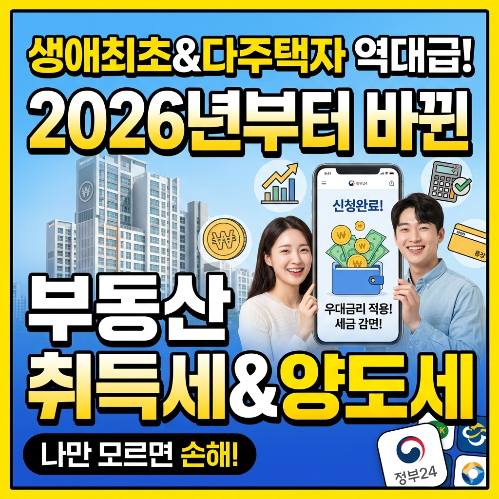 부동산 시장에 큰 변화의 바람이 불고 있습니다. 🌊 2026년 하반기부터 실거주자와 다주택자 모두를 아우르는 역대급 세제 개편안이 시행됩니다. 특히 생애 최초 주택 구입자라면 세금 부담이 거의 제로(0)에 가까워진다는 사실, 알고 계셨나요?