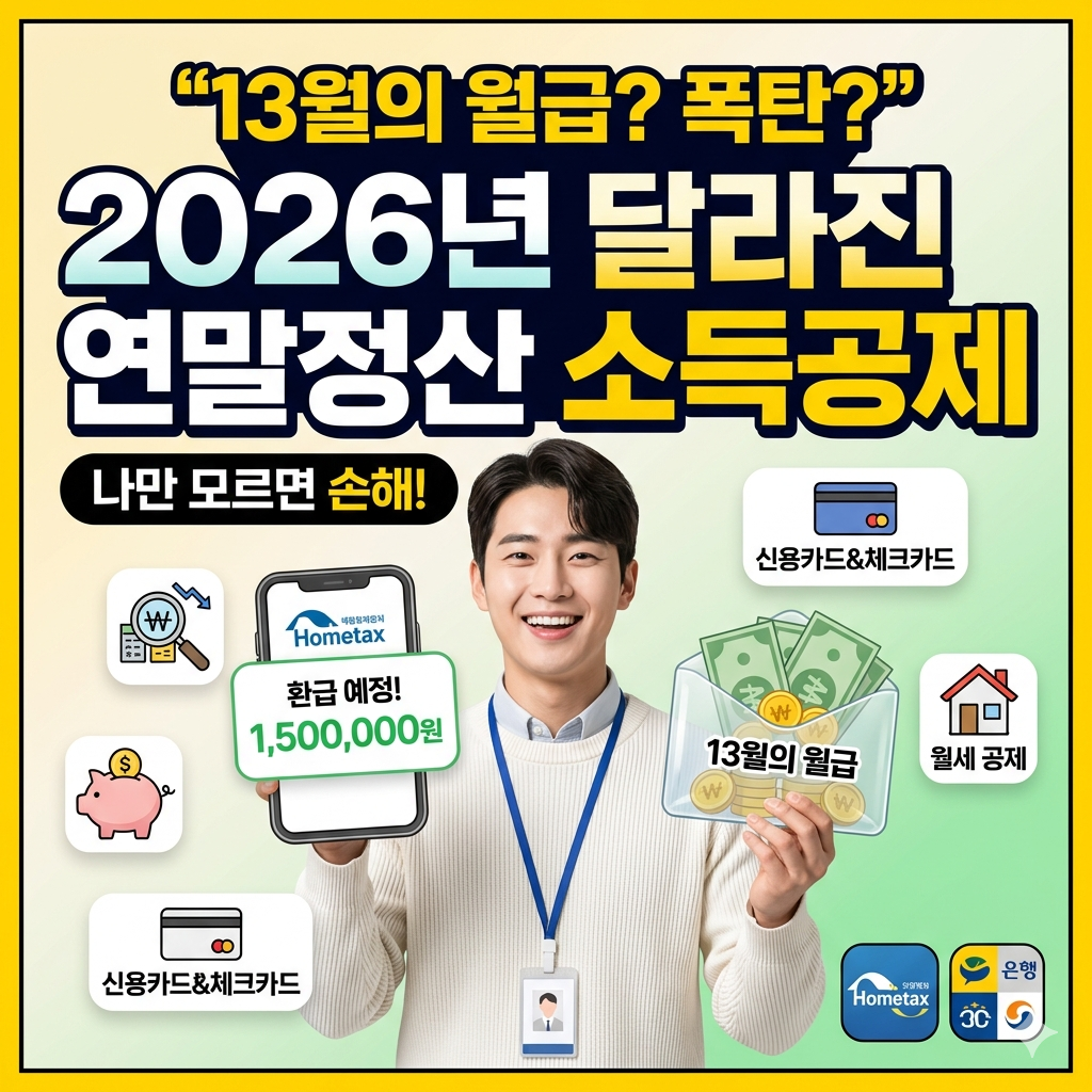 오늘 이 글에서는 2026년 연말정산에서 달라진 핵심 포인트와 지금 바로 내 예상 환급금을 확인하는 법을 완벽하게 정리해 드립니다. ⚠️ 클릭 몇 번으로 50만 원이 더 들어올지, 나갈지가 결정되니 꼭 끝까지 확인해 보세요!